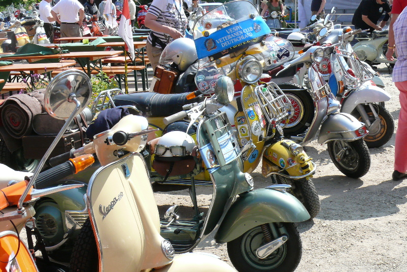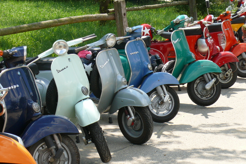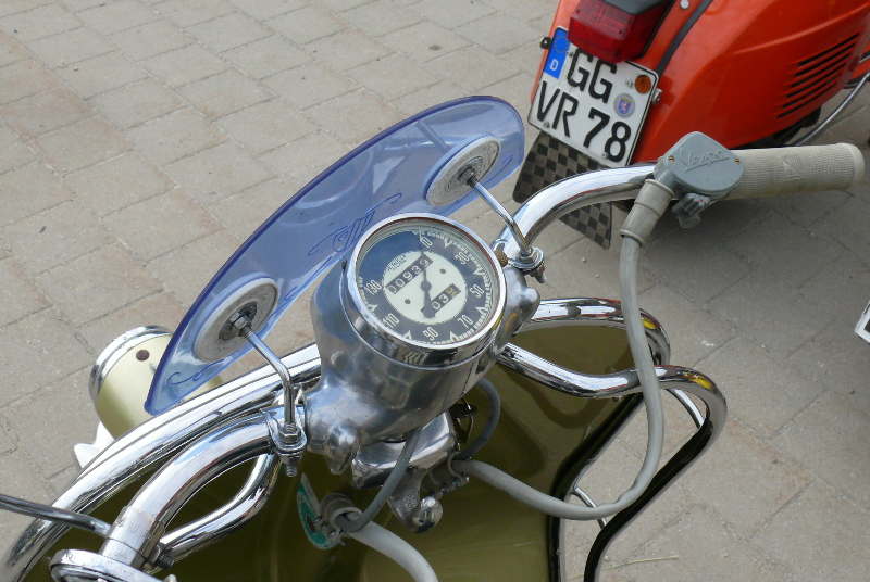 Am Samstag zum Corso durchs Umland dürften sich an die 300 Roller eingefunden haben, wobei der (geringe) Anteil Automaten-Vespas gar nicht mitgezählt ist.